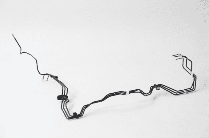 集合配管とは、車輌の床下を通る燃料配管、パージ配管、ブレーキ配管などを一体化した製品です。